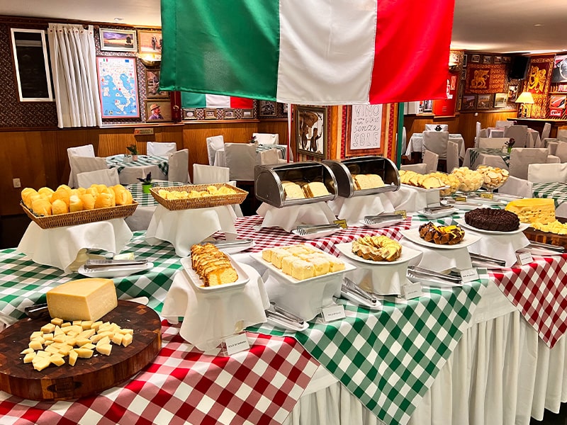 O café da manhã do Bella Italia é uma verdadeira refeição energizante, com mais de cem itens, incluindo pães, bolos, frutas frescas e opções quentes, como ovos mexidos e bacon. É a maneira ideal de começar o dia com disposição para explorar as belezas de Foz.